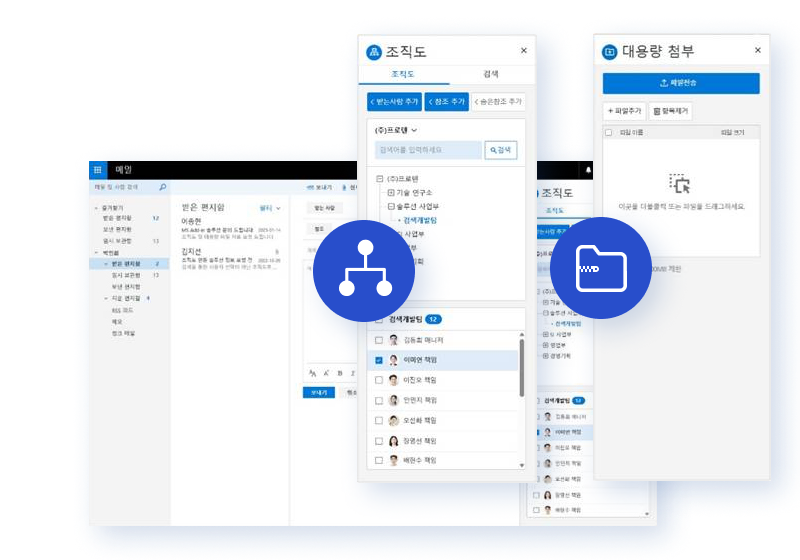 - 메일/결재/협업 등 그룹웨어와 주요기능 연동
