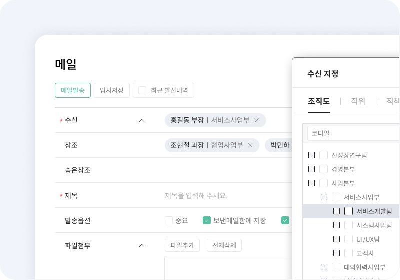 - 다양한 수신자 검색 및 다중선택